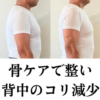 肩の位置が整い、背中・横幅が薄く、肩が軽いだけでなく、綺麗な姿勢と見た目に変化しています。